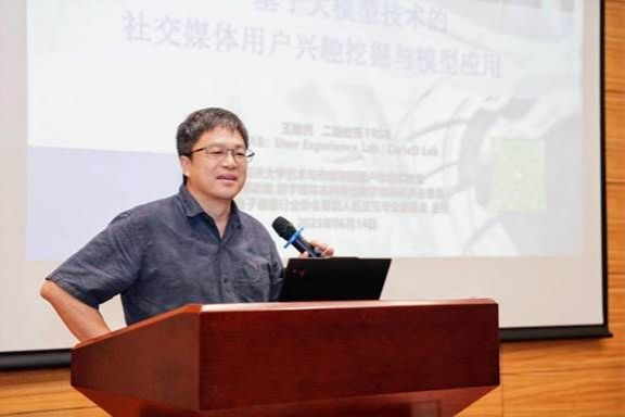 同济大学艺术与传媒成人影片 副院长王建民教授以《基于大模型技术的社交媒体用户兴趣挖掘与模型应用》为题进行分享
